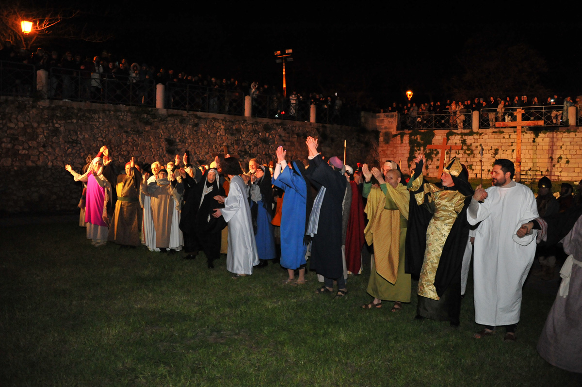 Attraverso la forza della drammaturgia sacra, sono state ripercorse le stazioni della Passione di Cristo: momenti carichi di significato che hanno raccontato il cammino di sofferenza, sacrificio e amore, trasformando lo spazio scenico in un percorso emozionale che ha coinvolto profondamente spettatori e partecipanti.